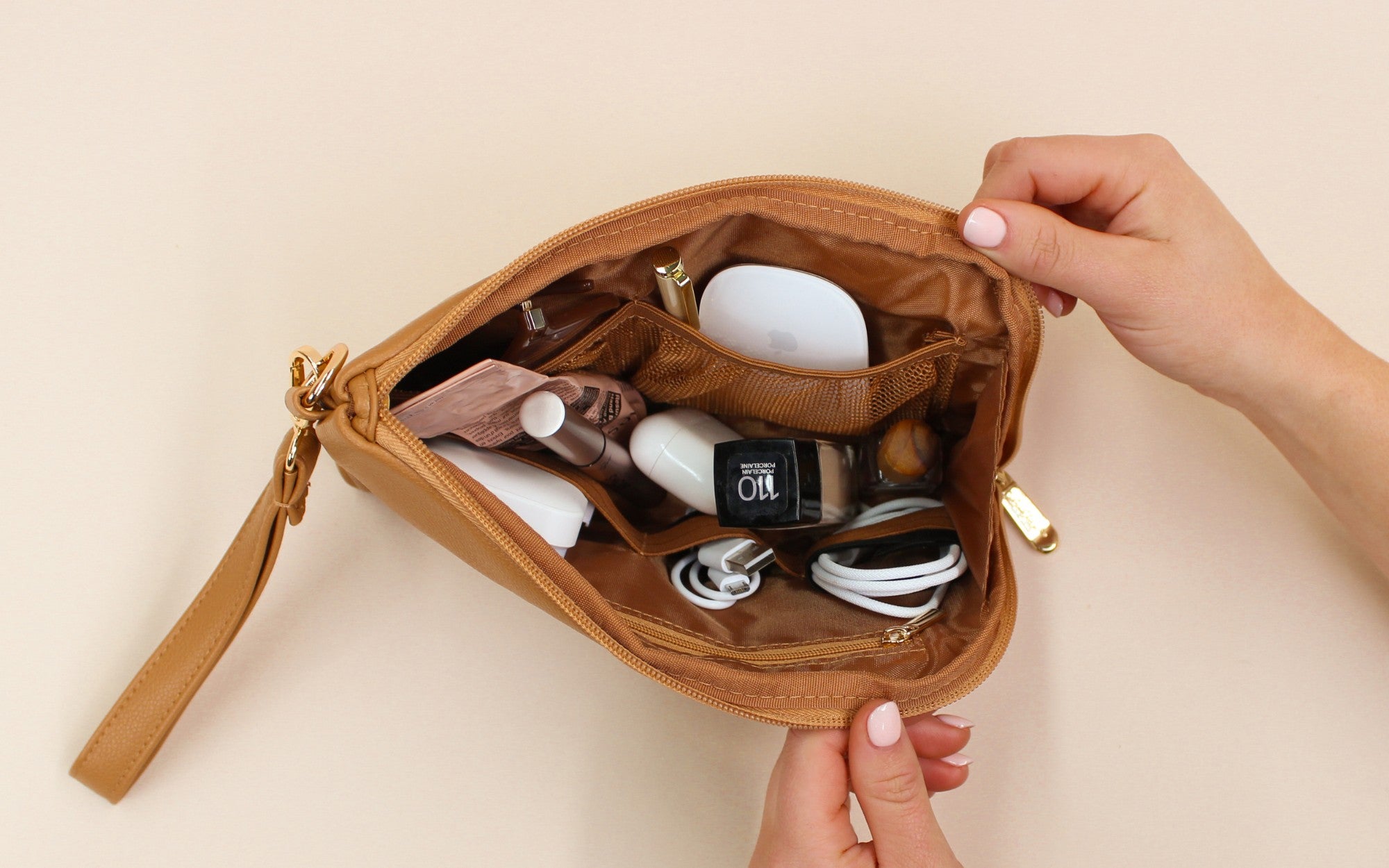 "This little pouch is very deceiving . The stuff you can fit in here blows my mind 🤯. It is very handy I use it for all the things that used to float around my tote bag definitely a life saver." Bronwyn H.
