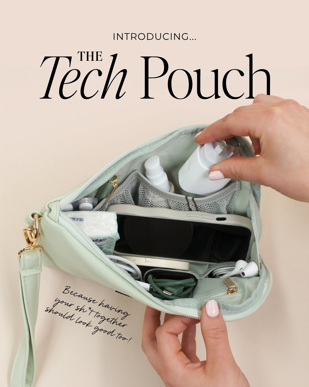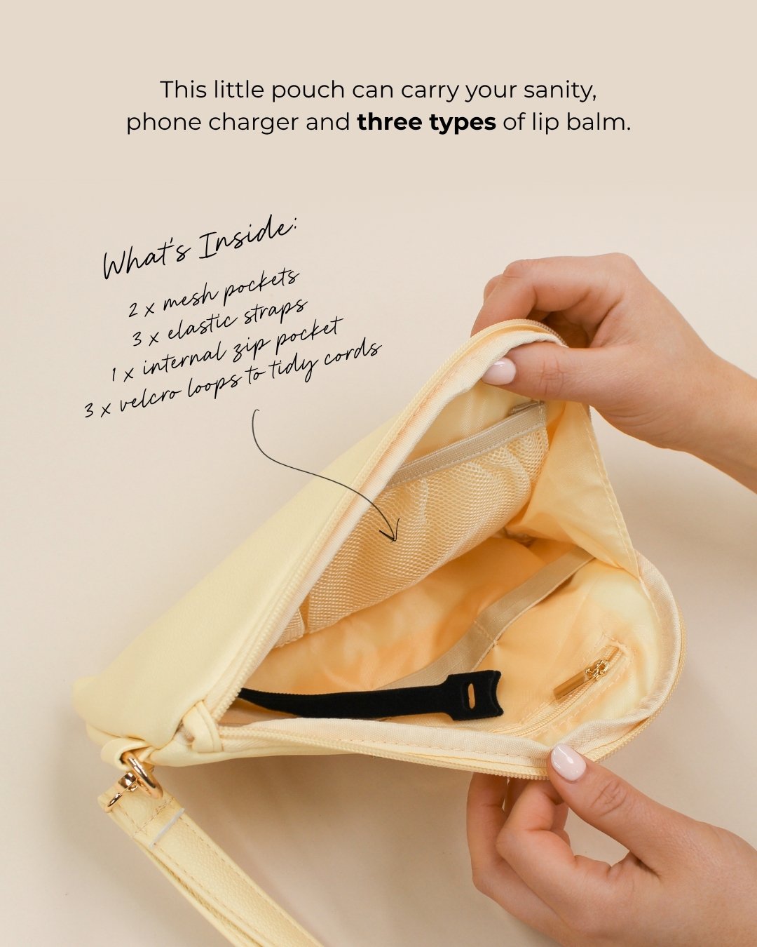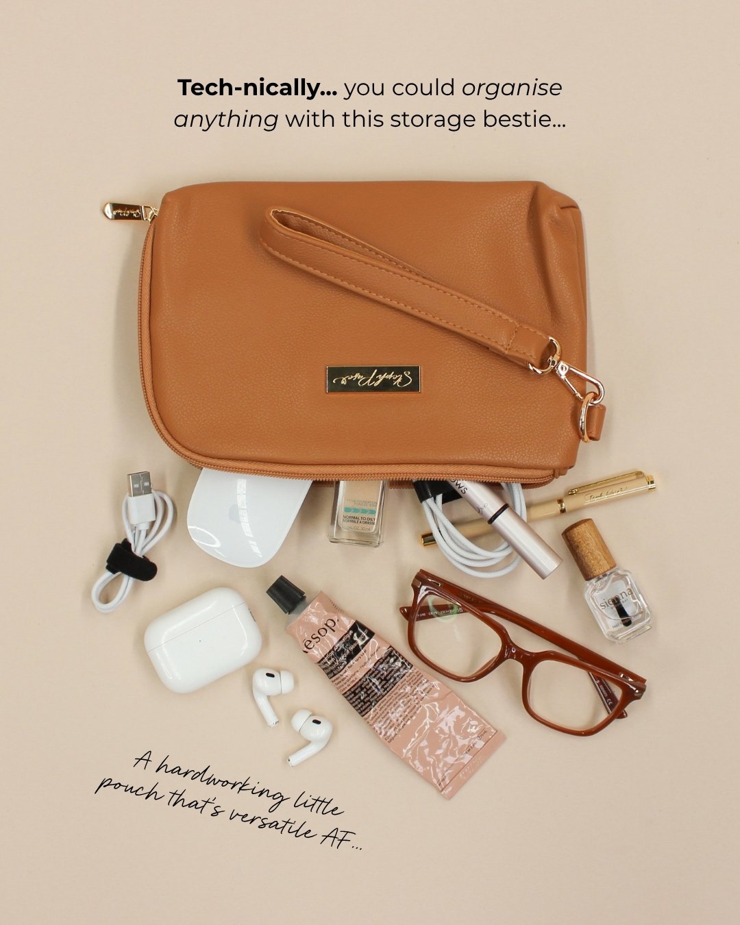 Organisation isn't always about doing more... sometimes it's about zipping it all up in one handy place. With mesh and zip pockets plus 3 x velcro cable loops, this hardworking clutch is as practical as she is pretty.